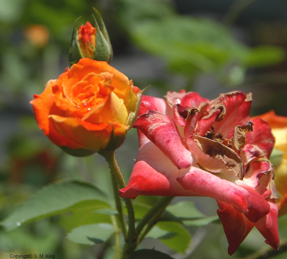 I’ve been playing with the manual settings on my camera (gasp!) This trio is on my rosebush, and it struck me, the three stages: